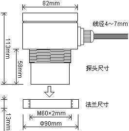 3.2 探頭外形尺寸(探頭尺寸會(huì)根據(jù)量程的不同而有所改變,若有不同會(huì)預(yù)先告知)