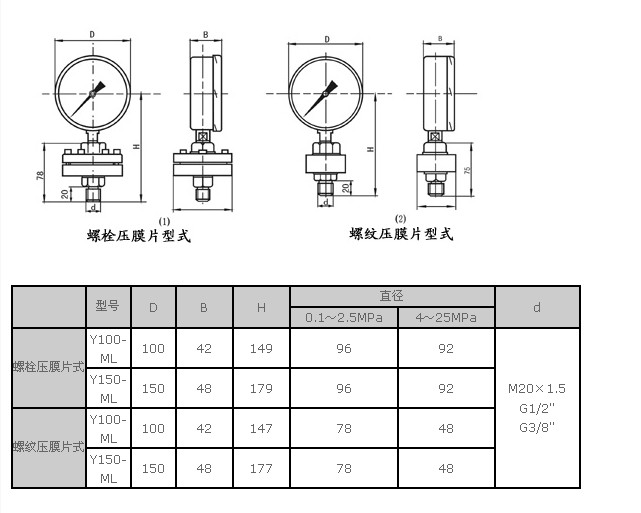 標(biāo)記1;Y-100B/SR/MF(A)316/4MPa/50-4.0HGJ46