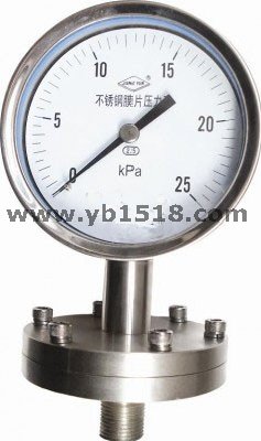 YPF膜片壓力表示用于測(cè)量有一定腐蝕性.粘稠介質(zhì)和非結(jié)晶或非凝固的各種流體介質(zhì)的壓力或負(fù)壓;可根據(jù)測(cè)量對(duì)耐腐蝕性能的不同要求而選用不同材料的膜片;外殼用不銹鋼材料的儀表;可在工作環(huán)境惡劣的情況下使用.