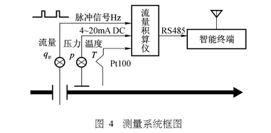 在本測量系統(tǒng)中,蒸汽的體積流量qv壓力p和溫度T分別通過電容式渦街流量計、壓力變送器和熱電阻(P1100)的檢測而轉換為PFM脈沖、4~20mADC和電阻值信號,并同時輸入現場的智能流量積算儀進行運算和顯示,其讀數即為補償后的蒸汽質量流量qm。