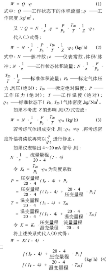 渦街流量計(jì)測量介質(zhì)為氣體時(shí),溫度、壓力補(bǔ)償公式?