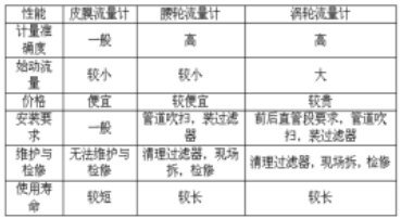 1.流量計(jì)的類(lèi)型。燃?xì)饬髁坑?jì)種類(lèi)繁多,型號(hào)復(fù)雜,并且各個(gè)廠家的叫法不一,但主要常用有一下類(lèi)型:皮膜流量計(jì)、腰輪流量計(jì)、渦輪流量計(jì)。其中各大類(lèi)又分為很多小類(lèi)。其主要特點(diǎn)見(jiàn)下表: