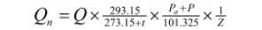 式中:Qn一標(biāo)準(zhǔn)狀態(tài)下的氣體體積量,m³;