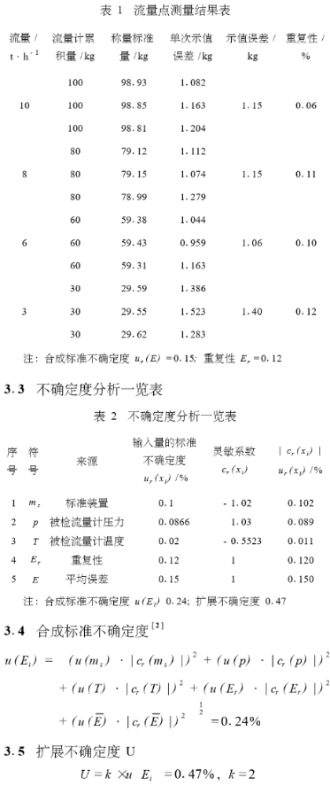1.渦街流量計(jì)標(biāo)準(zhǔn)裝置的不確定度u,(m,)