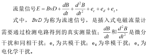 插入式電磁流量計(jì)兩個(gè)電極上實(shí)際測量得到的電壓信號(hào)可以用以下的信號(hào)模型來表示。即