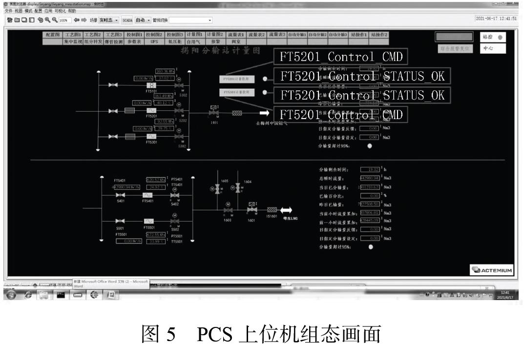 PCS 與流量計(jì)系統(tǒng)的通信是通過PLC 系統(tǒng)COM521 模塊實(shí)現(xiàn)的,流量計(jì)采集現(xiàn)場(chǎng)數(shù)據(jù)經(jīng)流量計(jì)算機(jī)轉(zhuǎn)換后通過RS485 傳至PLC,PCS 實(shí)現(xiàn)對(duì)現(xiàn)場(chǎng)數(shù)據(jù)的實(shí)時(shí)監(jiān)" />