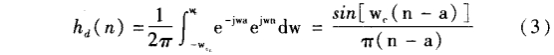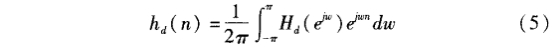 1)根據技術要求確定待求濾波器的單位取樣hd(n)。如果給出待求濾波器的頻率響應為Hd(ejw),那么單位取樣響應用下式求出: