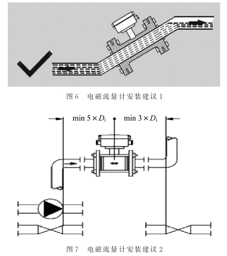 目前大體分為3類典型應(yīng)用:污水廠、凈水廠及管網(wǎng)。流量計的選擇需要考慮現(xiàn)場的工況與施工要求,現(xiàn)分析如下:新建凈水廠、污水廠及管網(wǎng)在安裝條件允許的情況下,安裝電磁流量計是不錯的選擇,但在安裝中需注意一-些情況。由于電磁流量計的特性,測量介質(zhì)需滿管,如不滿足滿管條件,請參考圖6的建議。