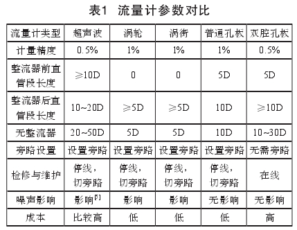 孔板流量計(jì)與其他流量計(jì)的參數(shù)對(duì)比