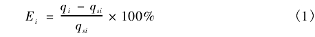 式中:Ei為第i檢測/校準點的相對誤差;qi為第i檢測/校準點積算單元的示值;qsi為第i檢測/校準點的瞬時流量的理論計算值。