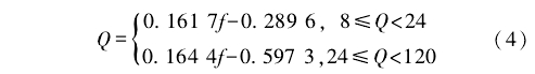 按照JJG1121-2015《旋進旋渦流量計》的檢定要求,對流量計進行標定,得到瞬時流量Q(m3/h)與頻率ƒ(Hz)之間的函數(shù)關系式如下: