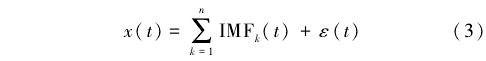 原始信號x(t)分解過程為:首先提取信號的極大值與極小值,通過三次樣條插值得到包絡信號計算其平均值mi(t),判斷差值hi(t)=x(t)-mi(t)是否為IMF分量,如果不是,則將差值作為下一次分解目標并重復以上步驟,直到得到本征模態(tài)函數(shù)IMFk(t)。每次提取IMF后,從原始信號中減去對應的本征模態(tài)函.數(shù),再進行下一次分解,直到最后的信號中不存在IMF,最終,原始信號可以表示為