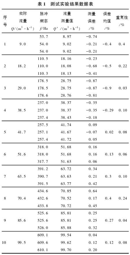 對實驗平臺管道施加3~4Hz的振動信號,在旋進旋渦流量計的量程內(nèi),任取10個流量點,每個流量點重復進行3次實驗,實驗結(jié)果如表1所示。