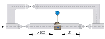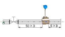 為方便檢修傳感器,最好為傳感器安裝旁通管。另外,在需清洗的管道上或所安裝傳感器的管道內(nèi)的流體不能為檢修傳感器而停供的情況下,必須安裝在旁通管,并且保證前后直管段![]() |
