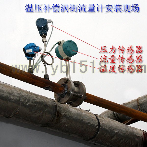 通過(guò)一體化溫度補(bǔ)償渦街流量計(jì),可顯示飽和蒸汽的瞬時(shí)質(zhì)量流量、累計(jì)流量以及溫度、壓力等。也可手動(dòng)設(shè)定蒸汽溫度,溫度及渦街傳感頭都可以在不停止管內(nèi)流體的情況下可更換。